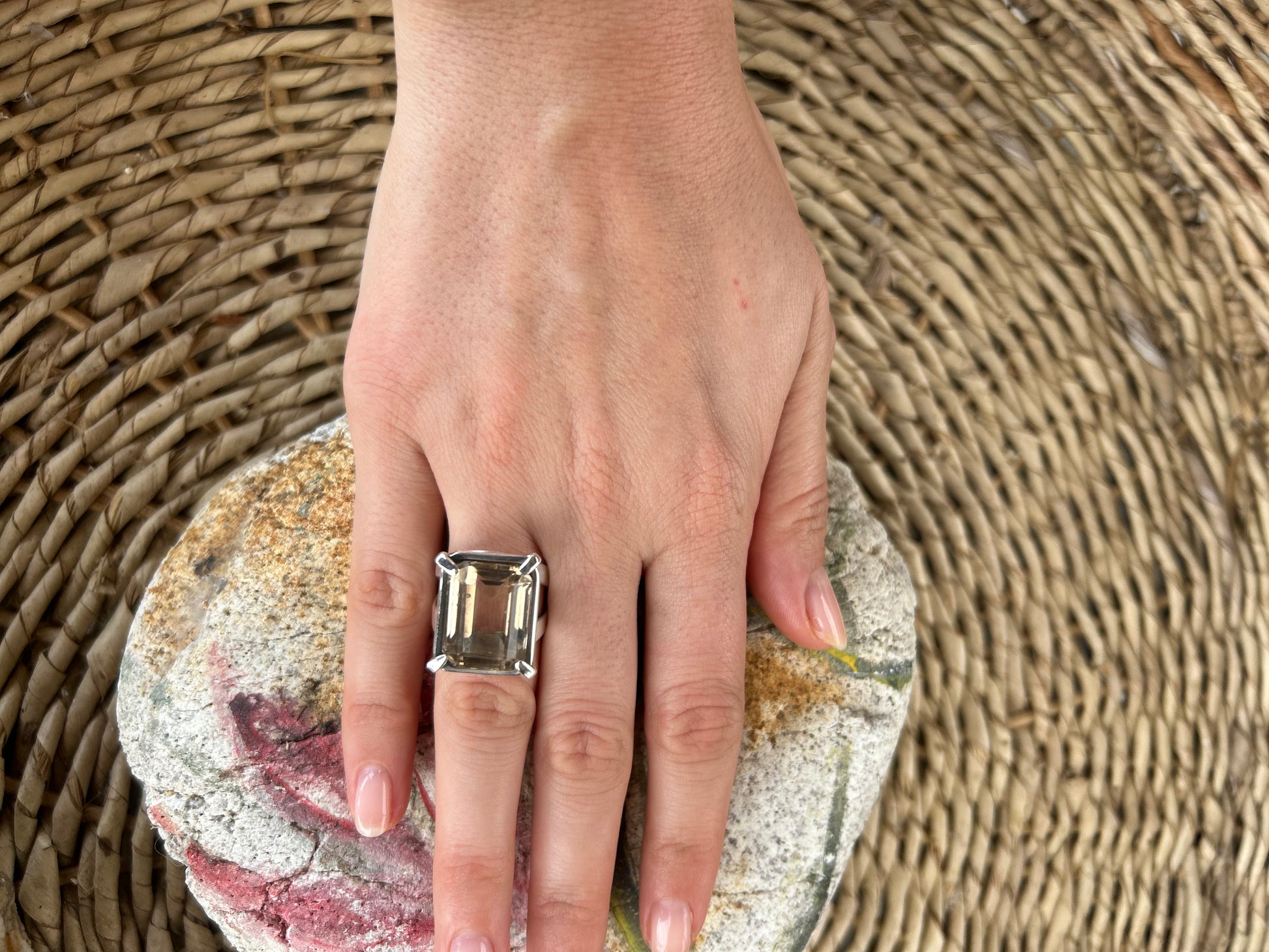 Anillo Alba Protectora, en plata 925 con topacio ahumado, un talismán de calma y protección. Proveniente de Brasil, esta piedra enraíza tu energía, disipa miedos y absorbe negatividad.