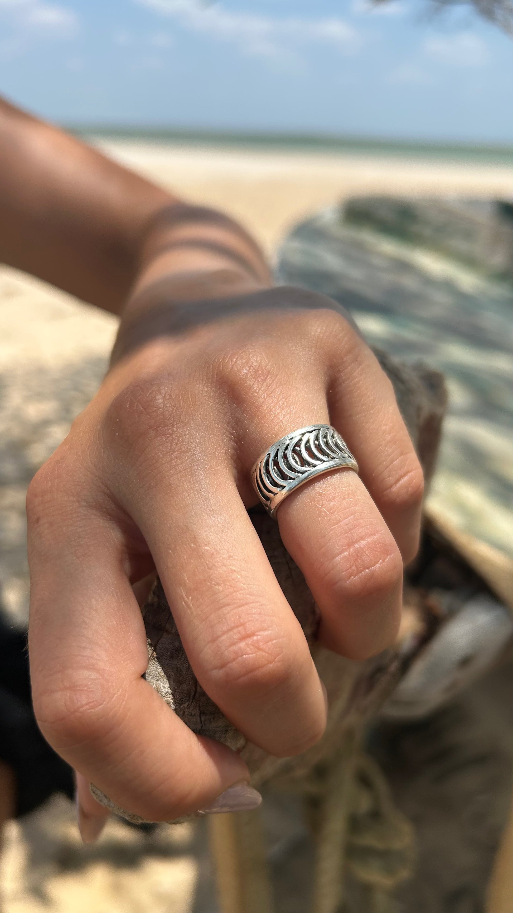 Anillo Susurro de Bali, en plata 925, un talismán minimalista que captura la esencia pura de Bali. Su diseño inspira calma y conexión. Llévalo para sentir la magia de la isla en cada detalle.